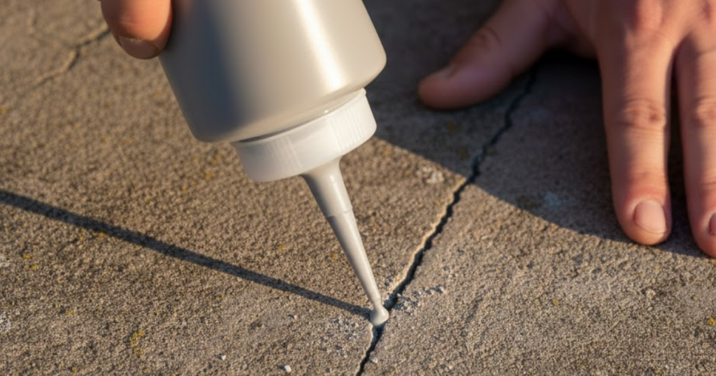 - Repair Materials: Concrete crack filler (liquid or caulk tube) or masonry epoxy.