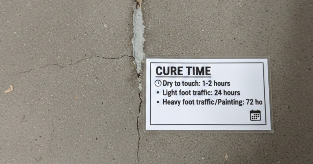 Check the manufacturer’s instructions. Most hairline fillers are “dry to the touch” in a few hours but require 24 to 72 hours before they can handle heavy foot traffic or be painted over.